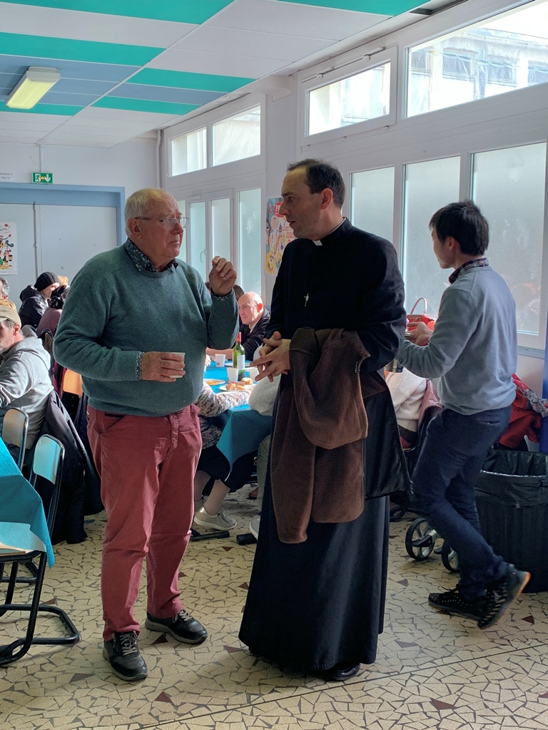 Cet événement, qui a lieu deux fois l'an, est une heureuse collaboration de la paroisse, l'école et de la conférence SVP cathédrale. La fin du repas a été animée par des danses accompagnées à l'accordéon, puis des chants repris par l'assemblée. Un bon moment de vivre ensemble que nous reproduirons en mars.