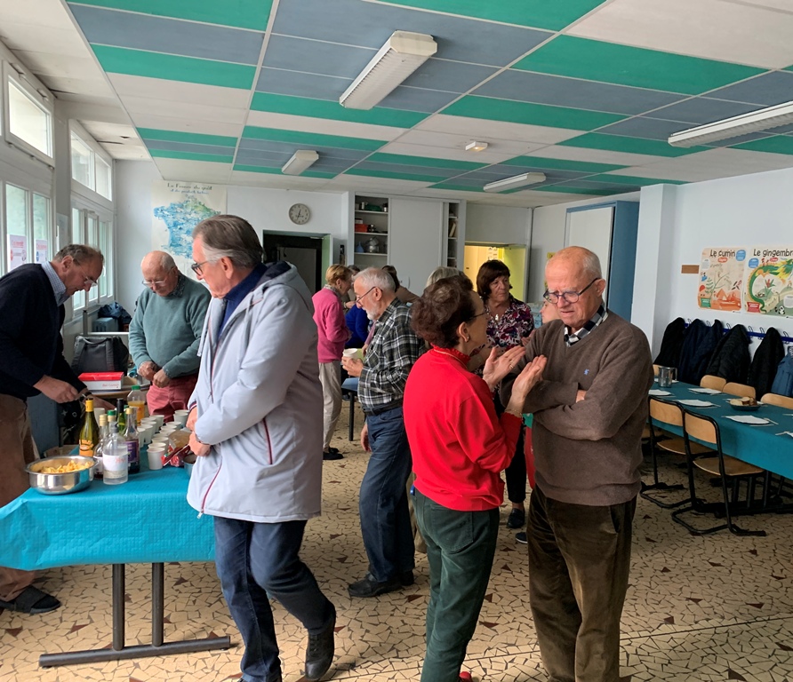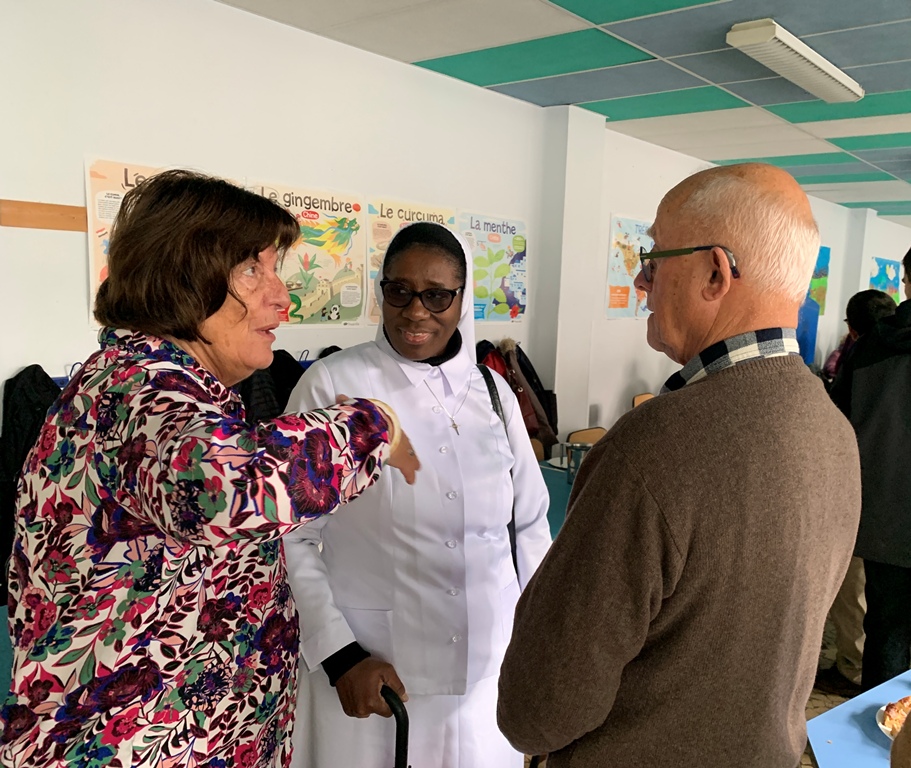 Ce dimanche 16 novembre, nous étions entre 80 et 90 convives – gens seuls, paroissiens,membres de la conférence SVP, le Père Marivin, le Père Perrot, trois sœurs de la la Charité Saint Louis nouvellement arrivées et trois jeunes en propédeutique avec leur responsable – réunis pour partager un repas et un bon moment fraternel dans le restaurant scolaire de l'école Jeanne d'Arc.