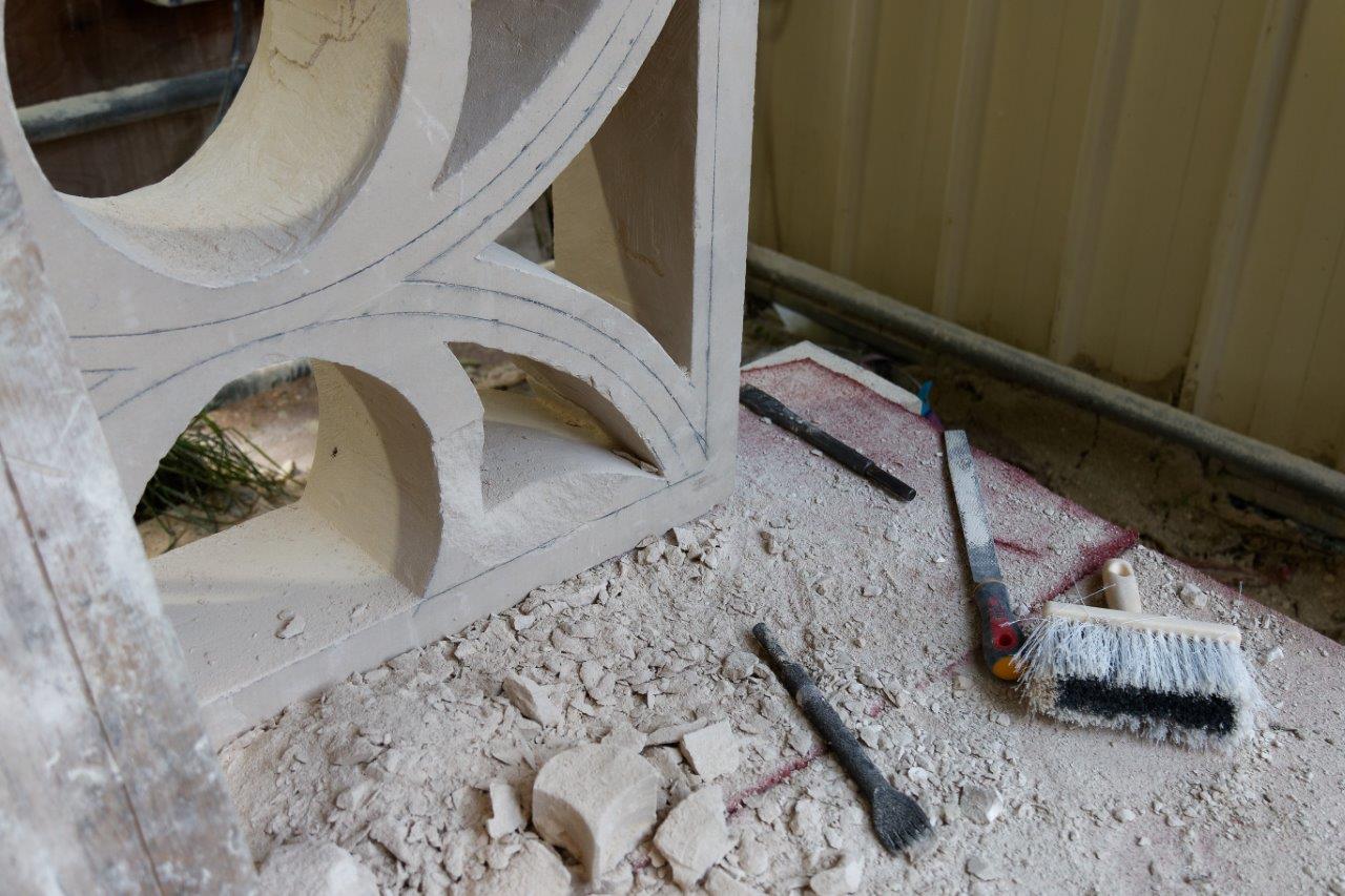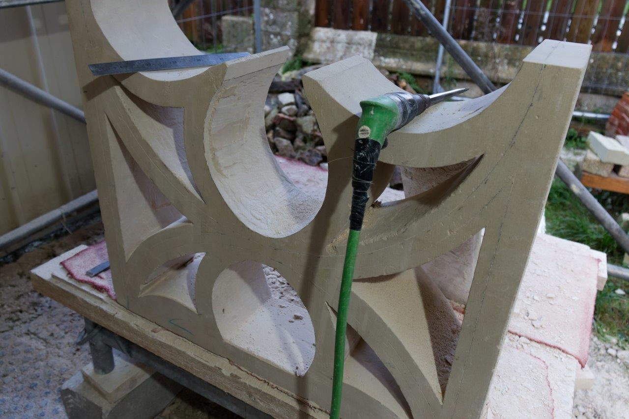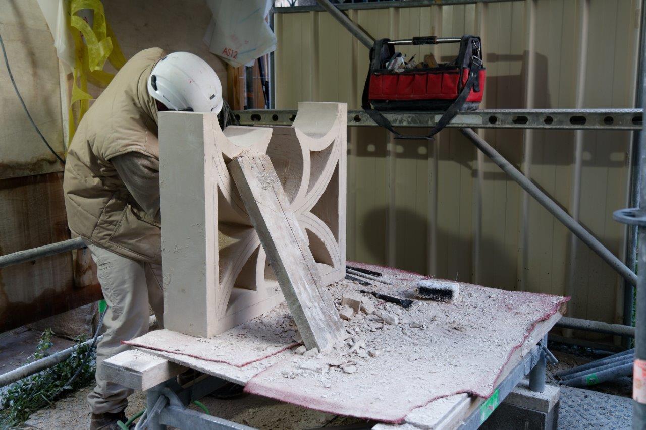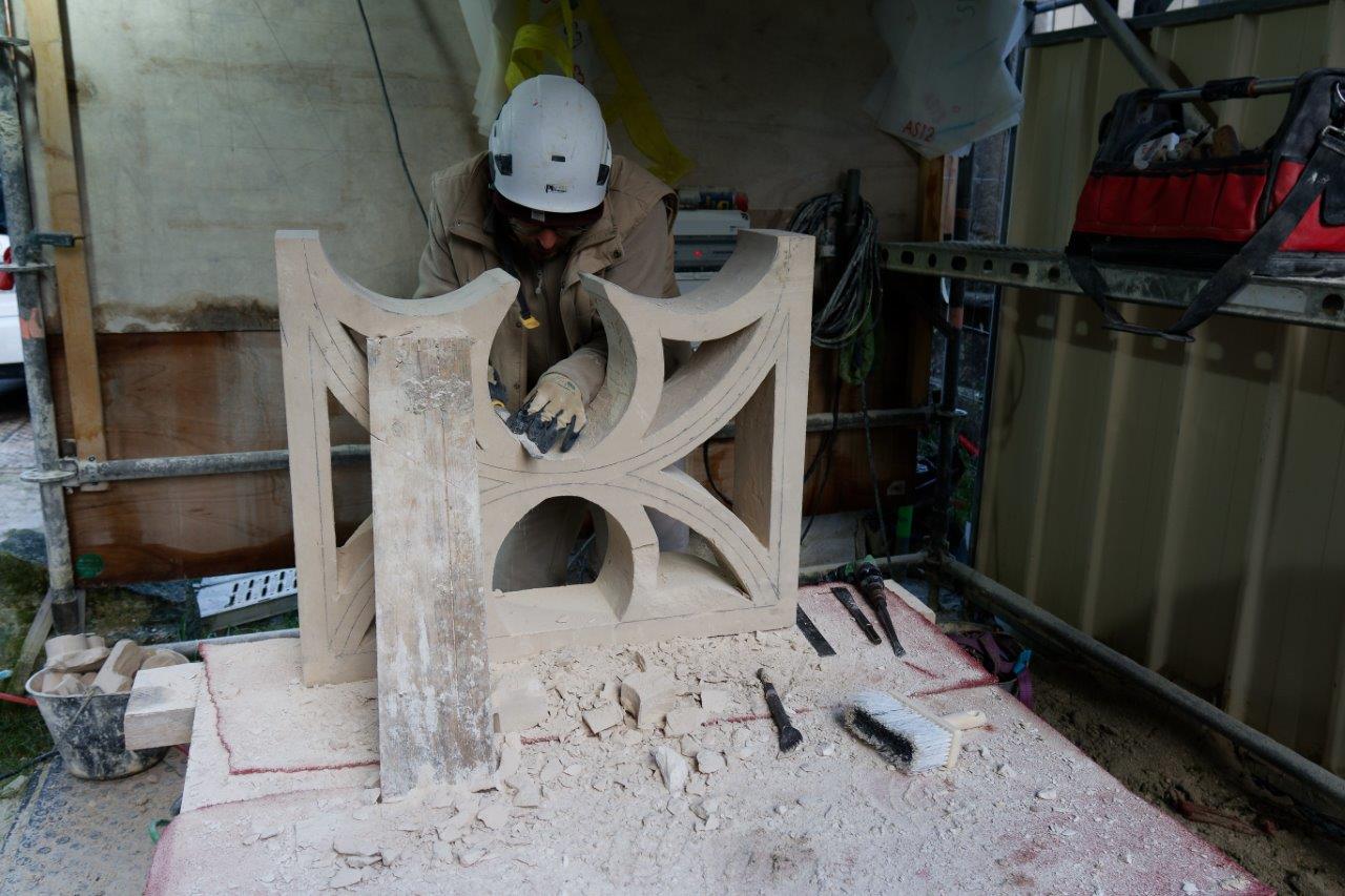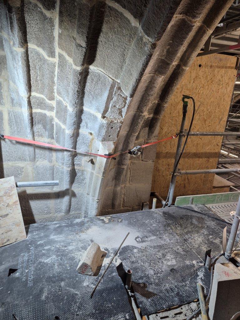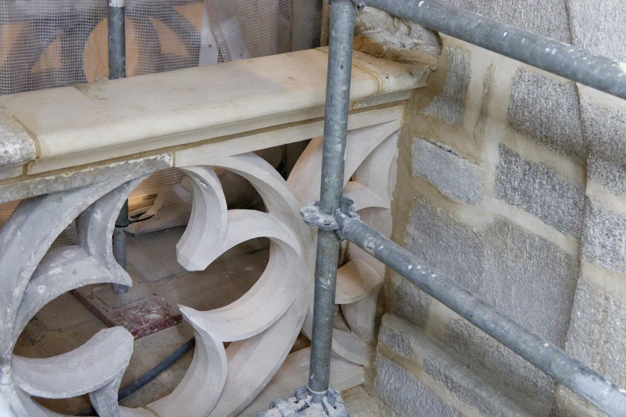 - La balustrade du triforium située de part et d'autre de l'entrée du choeur, se refait une beauté