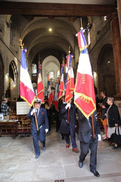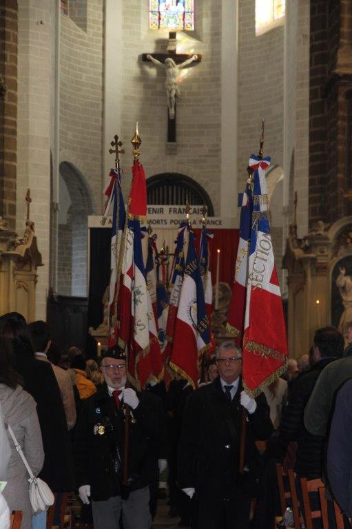 A la sortie de la messe, les honneurs ont été rendus par une vingtaine de porte-drapeaux d'associations patriotiques et d'anciens combattants.