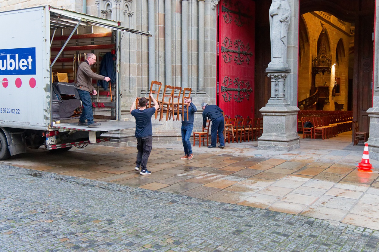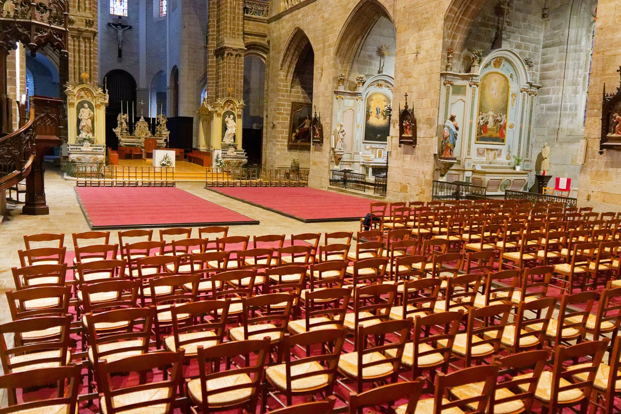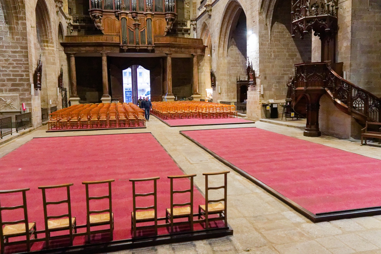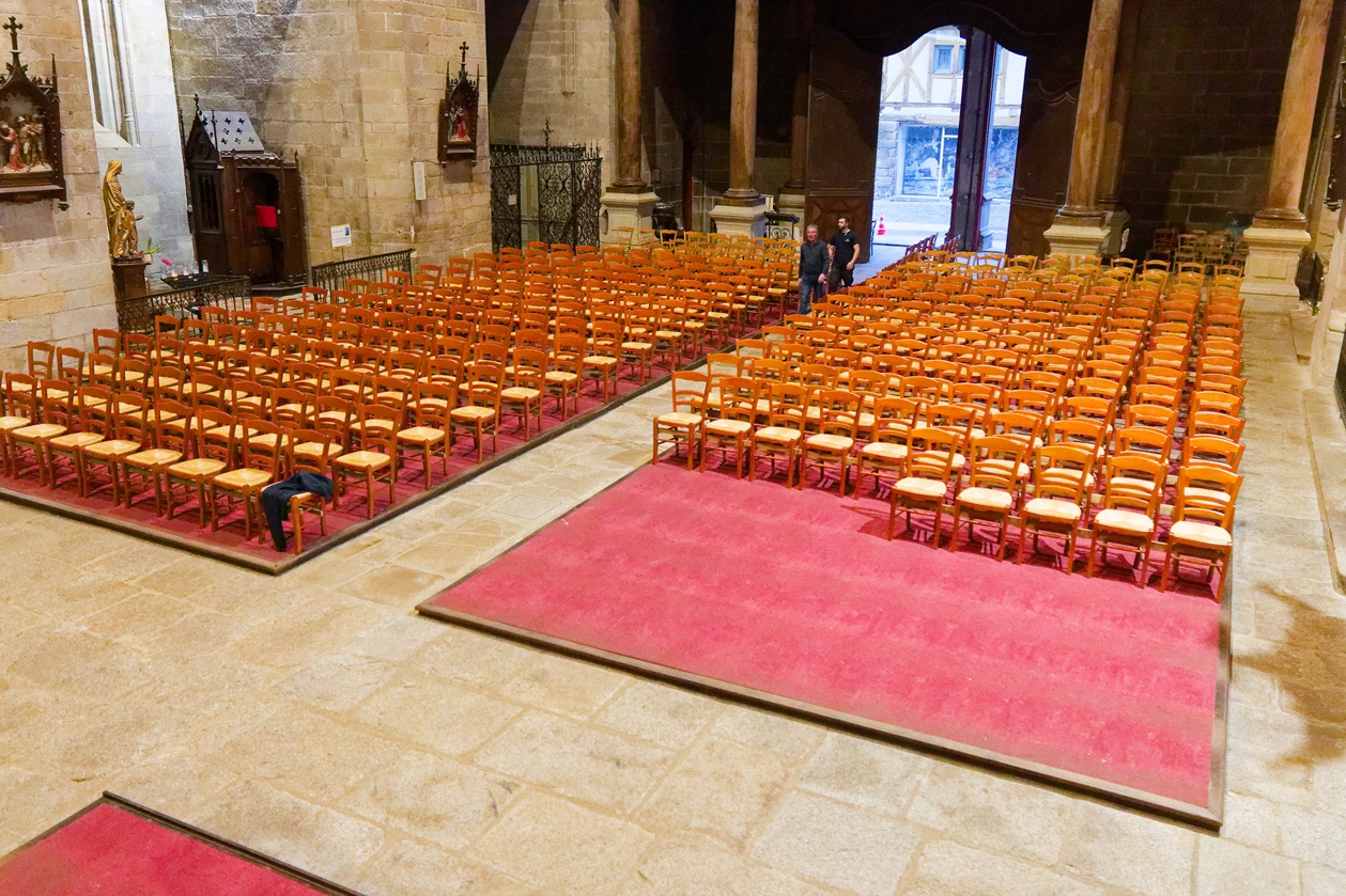 Le retrait des chaises de la nef, nous laisse déouvrir la belle moquette rouge qui avait été posée en 2007, lors de l'installation d'un chauffage par le sol. Cette installation n'avait jamais bien fonctionné, aussi cette moquette et le rehaussement en bois sur lequel elle était posée, seront retirés dans quelques jours. Nous retrouverons en 2027, un sol en dalles de granit.