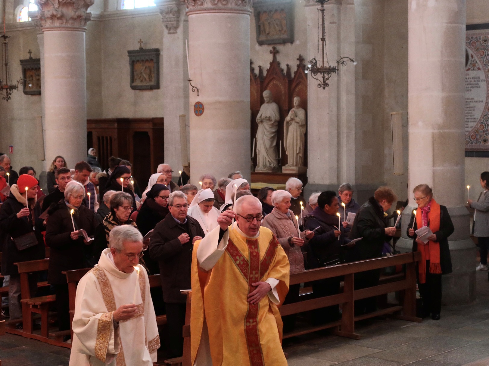 Ce dimanche 2 février, en la fête de la Présentation de Jésus au Temple, tous les religieux et religieuses du doyenné de Vannes - Arradon étaient invités à participer à la messe de 11 heures à la chapelle Saint François Xavier. ( lieu temporaire des célébrations dominicales de la cathédrale)