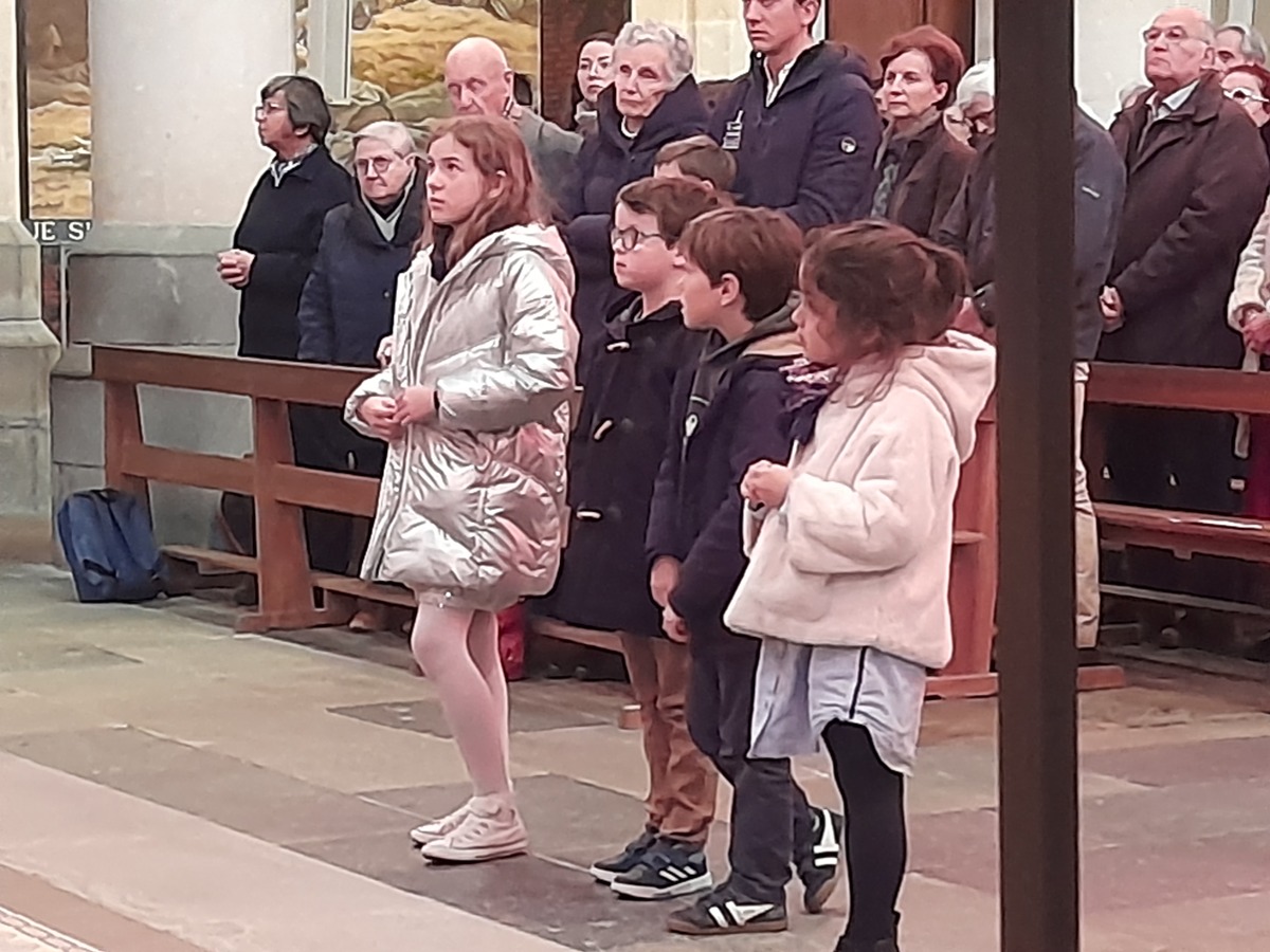 Au cours de la messe de 11 heures, Anouk, Louis Milan, Nathan et Sandro ont eu le troisième "scrutin" de leur préparation au baptême. Ils étaient tous très émus de vivre ce temps fort devant la communauté paroissiale, et ils ont eu une pensée spéciale pour Louis, malade, qui n'a pas pu être avec eux.