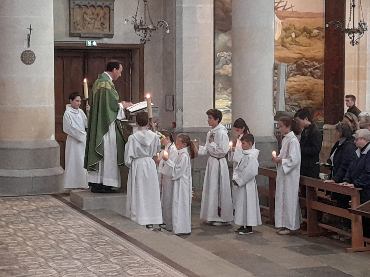 Ce dimanche 12 octobre 2025, 46 jeunes de la paroisse ont promis de servir la liturgie tout au long de l'année.