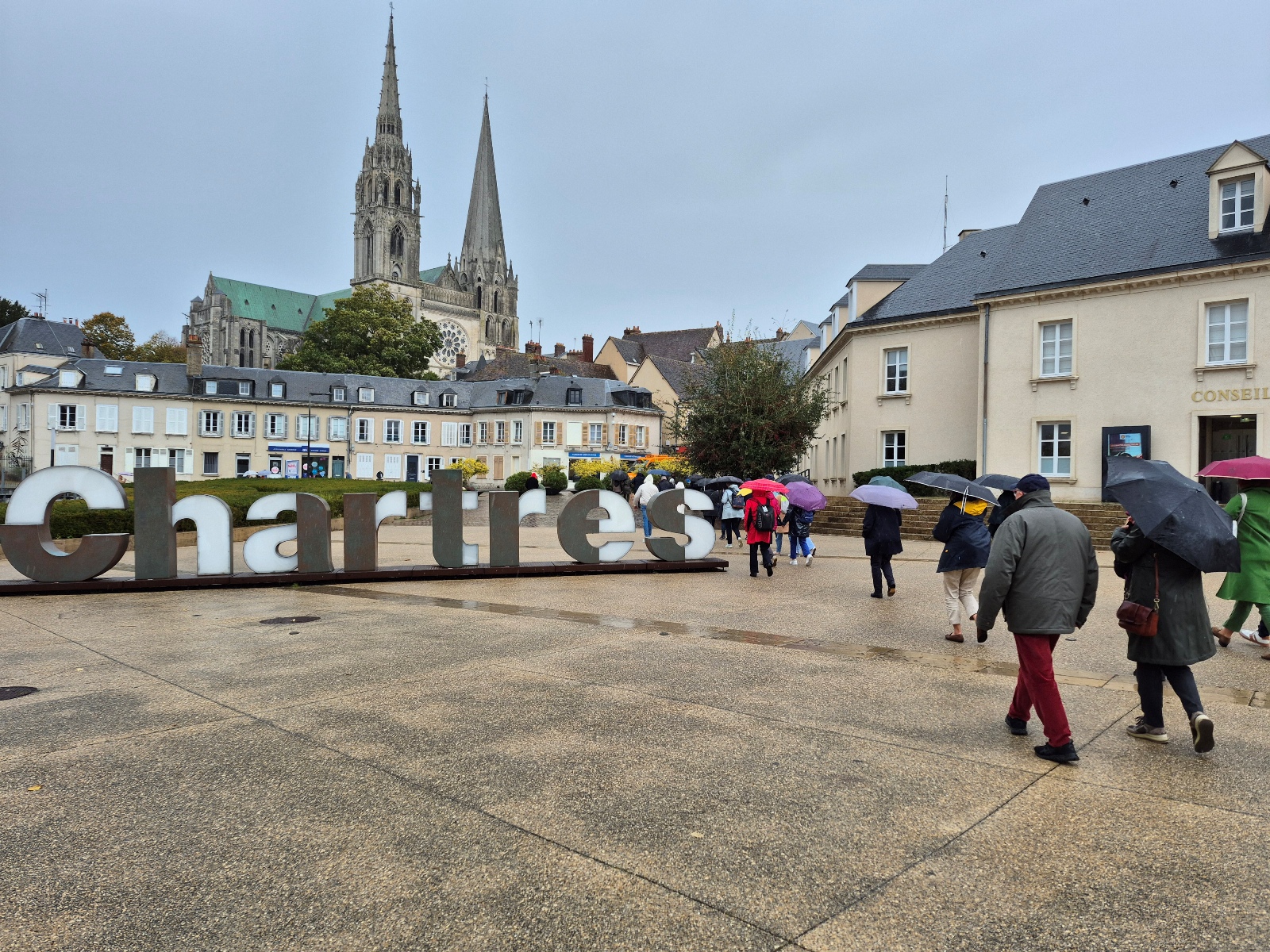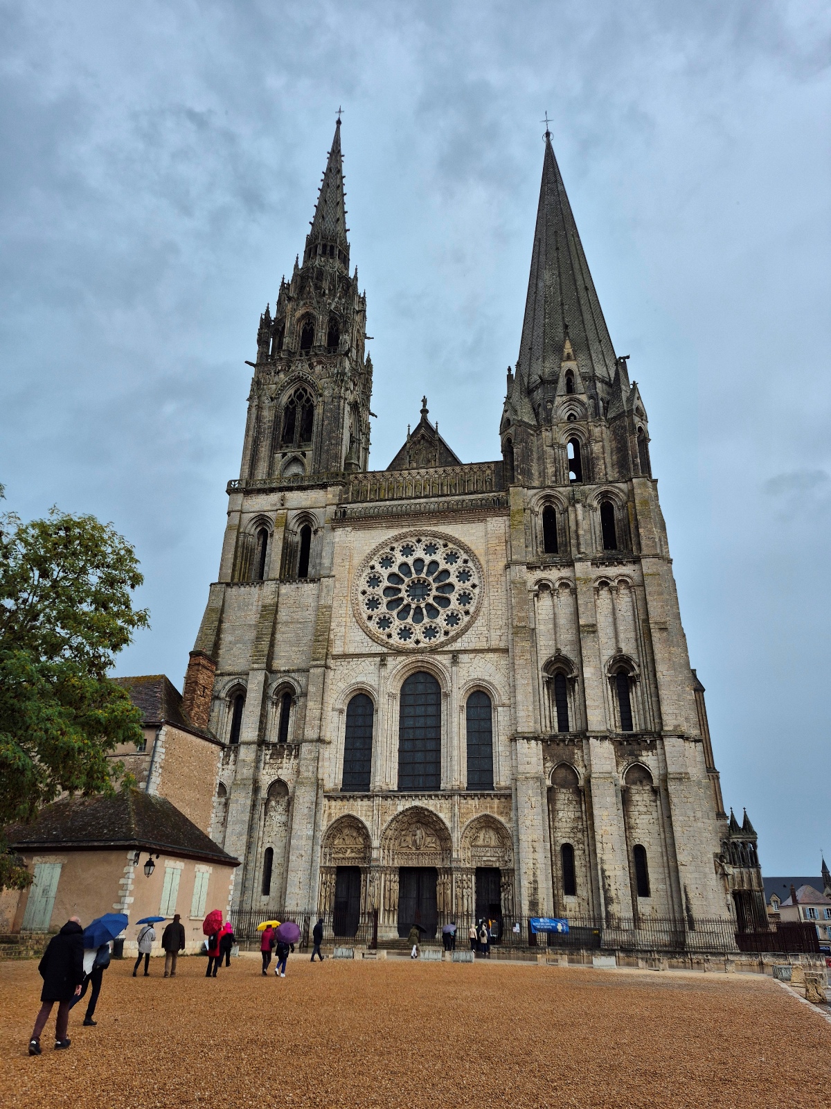 Partis de Vannes nous sommes arrivés à Chartres vers 14 heures, et nous avons aussitôt visité l’élégante cathédrale, aux deux flèches dissemblables, puisque l’une romane et l’autre gothique, comme à Vannes !