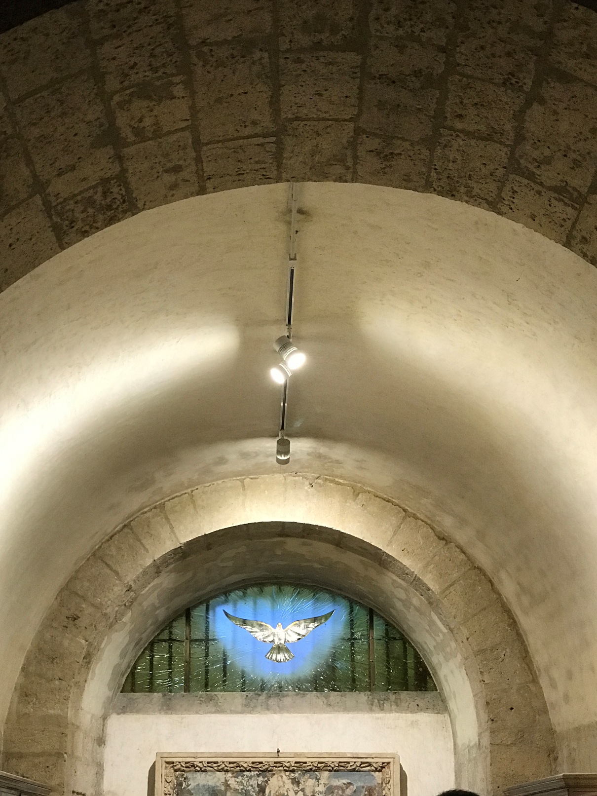 Ensuite, nous sommes descendus dans la crypte, pour une 2ème visite guidée, avec une approche spirituelle pour le pèlerinage jubilaire « Pèlerins d’espérance ». Art, culture et foi ! Notre guide nous a, en quelque sorte, pris par la main pour prier, chanter et en fin de parcours, nous proposer de renouveler les promesses de notre baptême devant le magnifique baptistère.