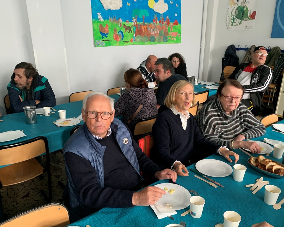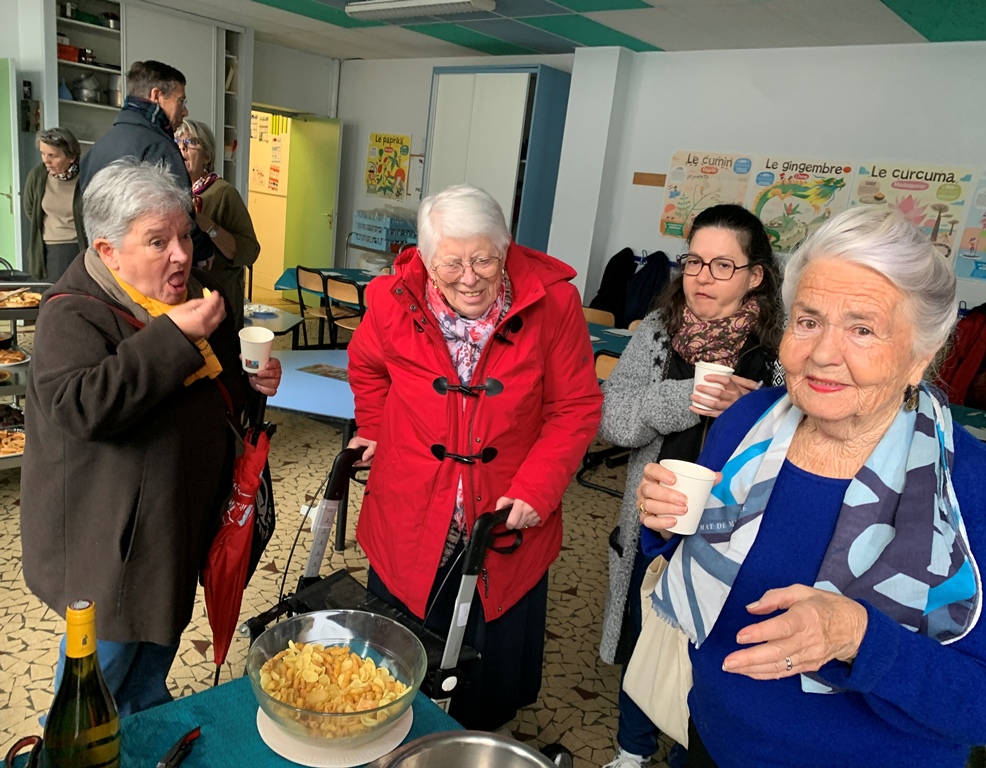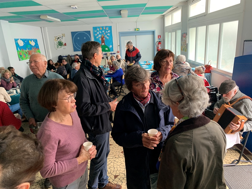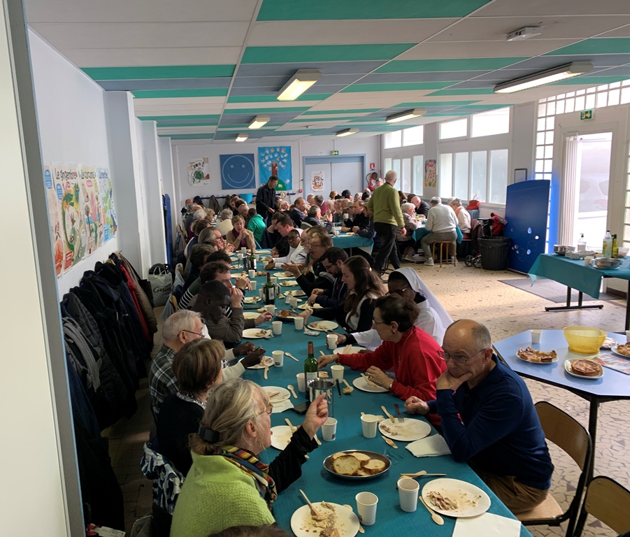 Cet événement, qui a lieu deux fois l'an, est une heureuse collaboration de la paroisse, l'école et de la conférence SVP cathédrale. La fin du repas a été animée par des danses accompagnées à l'accordéon, puis des chants repris par l'assemblée. Un bon moment de vivre ensemble que nous reproduirons en mars.